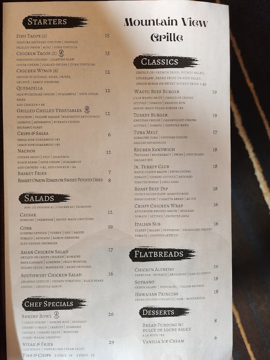 Service is exceptional, with attentive staff ensuring a satisfying experience. Enjoy breakfast or lunch on the inviting patio, making for a peaceful retreat. With reasonable pricing and a happy hour that invites relaxation, Mountain View Grille is a must-visit destination for both locals and visitors alike.